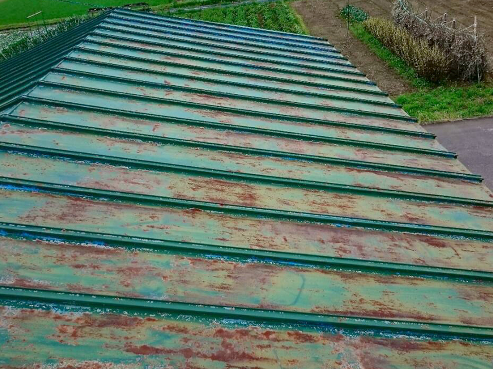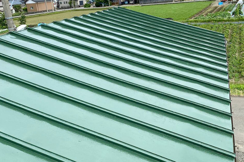 錆びた折半屋根を塗装したことで劣化を防ぎ、穴あきや雨漏りを防ぎます。