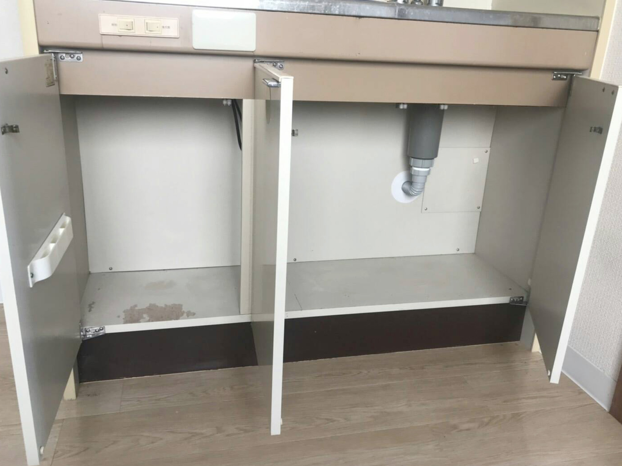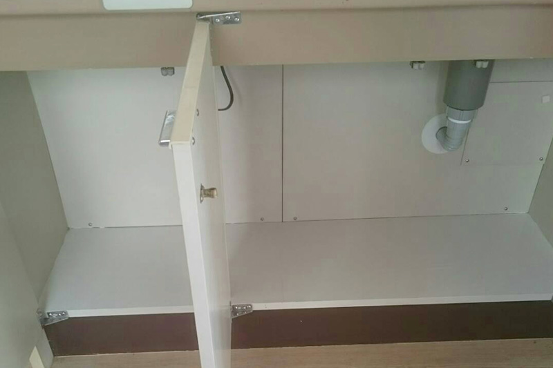 洗面台の底板を塗装し直したことで見栄えがよくなりました。